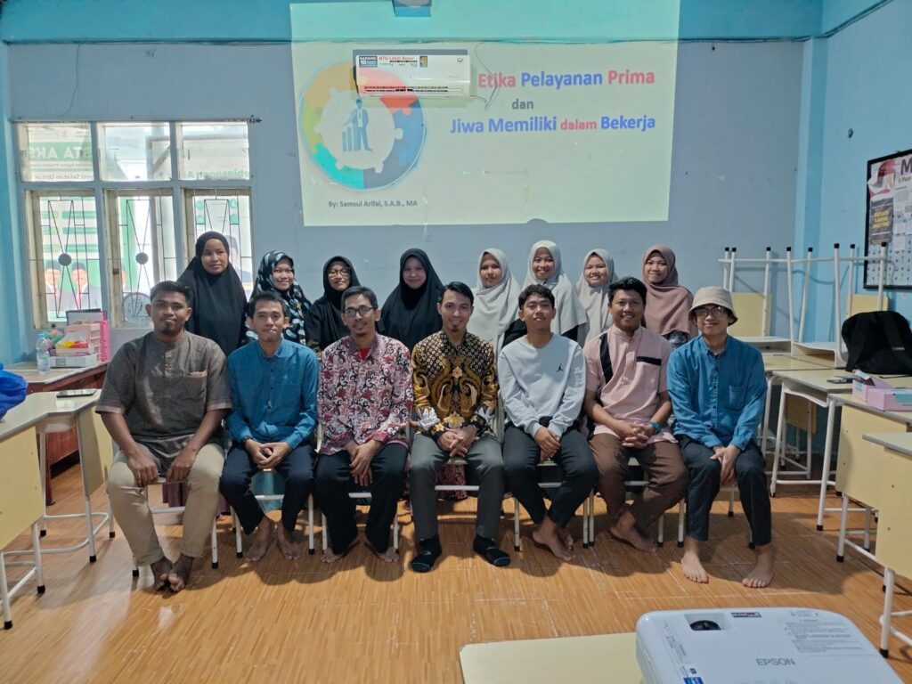 Sesi pertama ditujukan bagi tenaga kependidikan, dengan narasumber Bapak Samsul Arifai, S.A.B., M.A., Dosen Fakultas Ekonomi dan Bisnis Islam UIN Alauddin Makassar. Dalam sesi ini, beliau membawakan materi bertema Etika Pelayanan Prima dan Jiwa Memiliki dalam Bekerja, yang bertujuan membentuk karakter pelayanan yang berkualitas dan tanggung jawab kerja yang tinggi di lingkungan kerja.