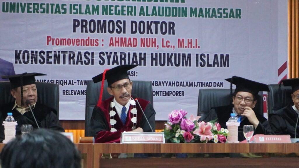 Gowa, 30 Juli 2025 — Ahmad Nuh, Lc., M.H.I., salah satu dosen terbaik Sekolah Tinggi Agama Islam (STAI) Al-Azhar Gowa, resmi meraih gelar doktor setelah berhasil mempertahankan disertasinya dalam ujian terbuka promosi doktor di Program Studi Dirasah Islamiyah Konsentrasi Syariah/Hukum Islam, Pascasarjana UIN Alauddin Makassar.